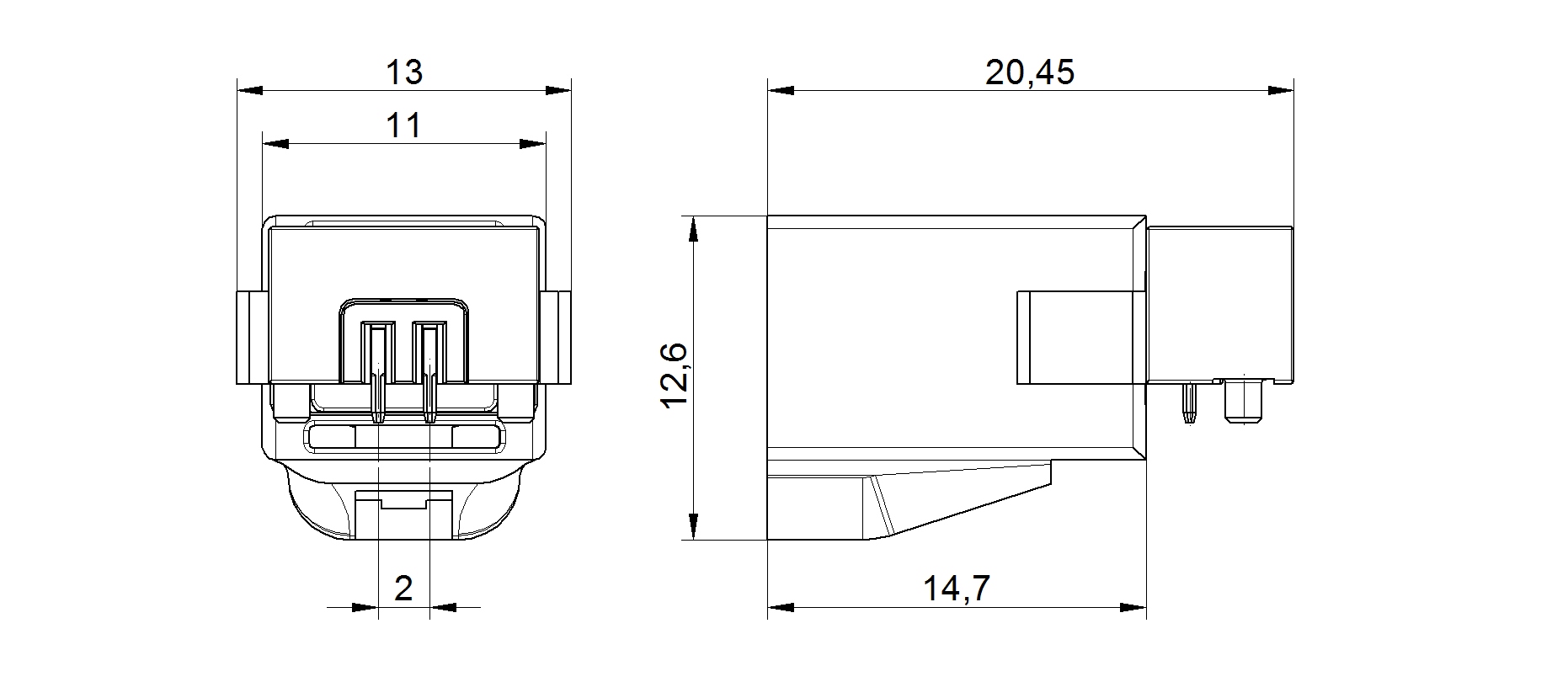 PCB mount angle plug 1-pole - locking position 06:00 - short version